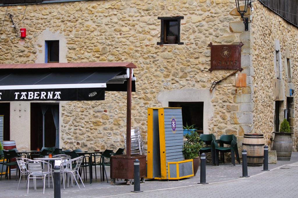 En el pueblo, además de Iglesia, farmacia y una parada de autobús que comunica los pueblos entre Iruña-Pamplona y Vitoria-Gasteiz, hay un bar con terraza y mucho estilo donde se puede comer pintxos y cenar los fines de semana. Se llama Kaluxa y está regentado por una pareja de hermanos muy simpáticos.